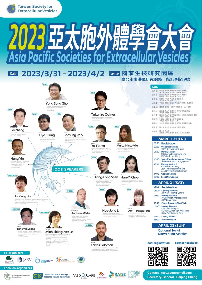 - 亞太胞外體學會大會將於2023年3月31日至4月1日於南港國
